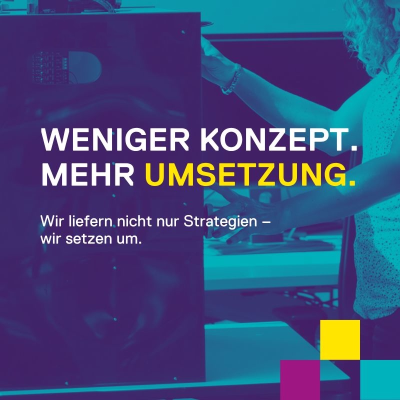 „Weniger Konzept“ ist so gesehen also keine besonders gute Idee. Aber natürlich können wir uns gut vorstellen, was unsere Kolleg:innen im Sinn hatten, als sie diese Anzeige konzipiert haben und wie sie gemeint ist. Natürlich kennen wir auch die Berater, die nur Folien und heiße Luft produzieren, die sich im Elfenbeinturm wohl fühlen und keinen Bedarf sehen, sich die Hände schmutzig zu machen und sich um die Umsetzung zu kümmern. Dagegen möchten sich die Ersteller der Anzeige positionieren und zeigen, dass sie die Umsetzung konkret und im Detail begleiten. Ihnen ist es wichtig, anzupacken und etwas zu schaffen.